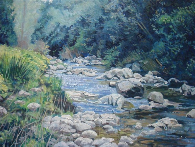 Paul now works mainly on canvas. He enjoys the way that paint can be absorbed initially into the surface providing a sound foundation on which to build the work. He uses a variety of textures from rough Hessian type finishes to finer cotton duck depending on the requirements of the subject. Paul enjoys the qualities of oil paint and above all, the fact that it takes some time to prove and so can be worked for a while after its initial application.