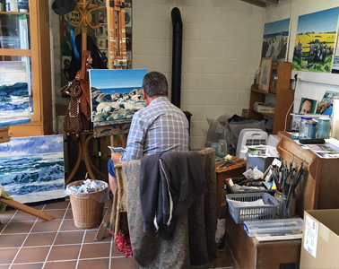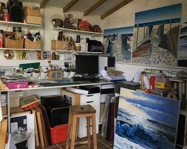 Paul started working in his new studio in autumn 2014. Somewhat larger than his old studio it is still situated in the garden at home in South Bristol; he has the same peace and quiet of the garden and the company of the garden birds as he had in his smaller studio but the new space gives Paul much more room to paint and to store his finished work as well as the space to try out other media.
